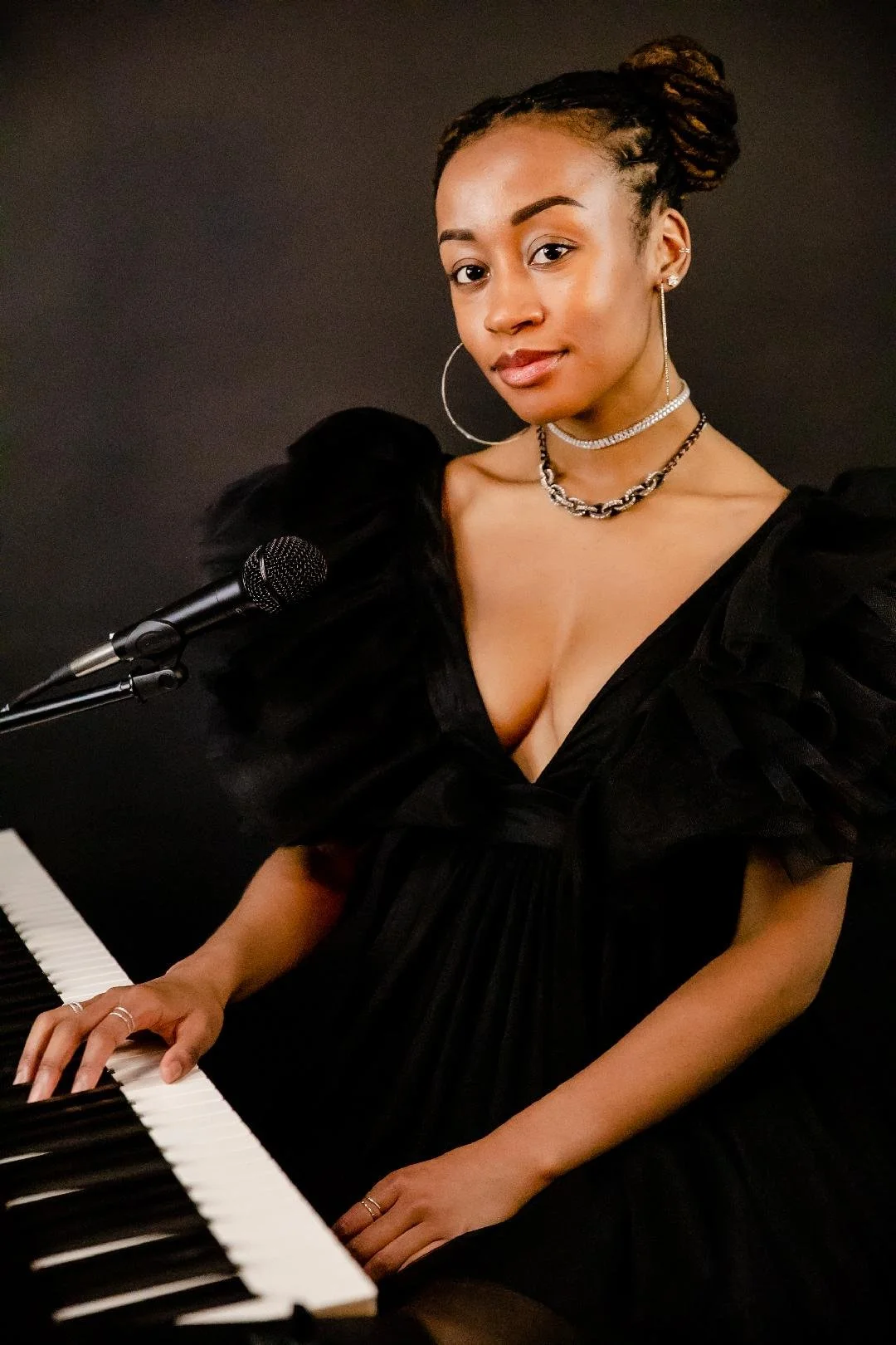 DAMOYEE was born Damoyee Janai Neroes on October 4, 2000 in Dallas, Texas and raised in Arlington, Texas. She has two younger siblings. When DAMOYEE was two years old, her parents recognized her ability to replicate rhythms and melodies from children’s shows she watched on TV. They bought her a keyboard, guitar, and percussion instruments, then put her in private lessons to study piano, music theory, and composition. DAMOYEE began songwriting as a pre-teen and produced her first songs on a school-issued iPad in the 7th grade. She performed her first original song publicly at age 10, and by age 13 she released an EP and had worked her way to the main stages of Levitt Pavilion in Arlington, Texas and House of Blues Dallas. DAMOYEE has cited Alicia Keys, Stevie Wonder, and John Legend as artists that inspired her to have the confidence to sing and play piano at the same time. In junior high school, DAMOYEE was first chair clarinet in honors band. DAMOYEE is an alumna of Booker T. Washington High School for the Performing and Visual Arts (Erykah Badu, Edie Brickell, Norah Jones, Roy Hargrove, Shaun Martin, and RC Williams) where she continued her classical piano studies and took additional courses in jazz piano, jazz vocal, and electronic production. DAMOYEE was awarded a rare, full-tuition scholarship for 4 years to attend Berklee College of Music (Roy Hargrove, Lalah Hathaway, Quincy Jones, Diana Krall, John Mayer, Charlie Puth, Esperanza Spalding). In May 2023, DAMOYEE graduated from Berklee College of Music with a bachelor’s degree in film scoring.